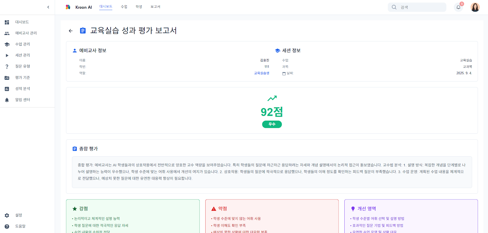 TSR(Teaching Simulation Room)은 OWLIX AI의 강력한 성능을 교육 분야에 최적화한 솔루션입니다. 예비교사들은 인간 평가자가 제공하기 어려운 수준의 일관되고 객관적인 데이터를 기반으로 실전 역량을 강화할 수 있습니다.